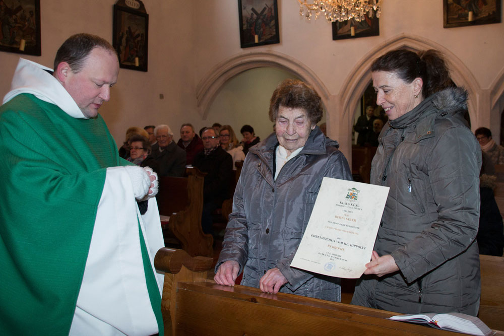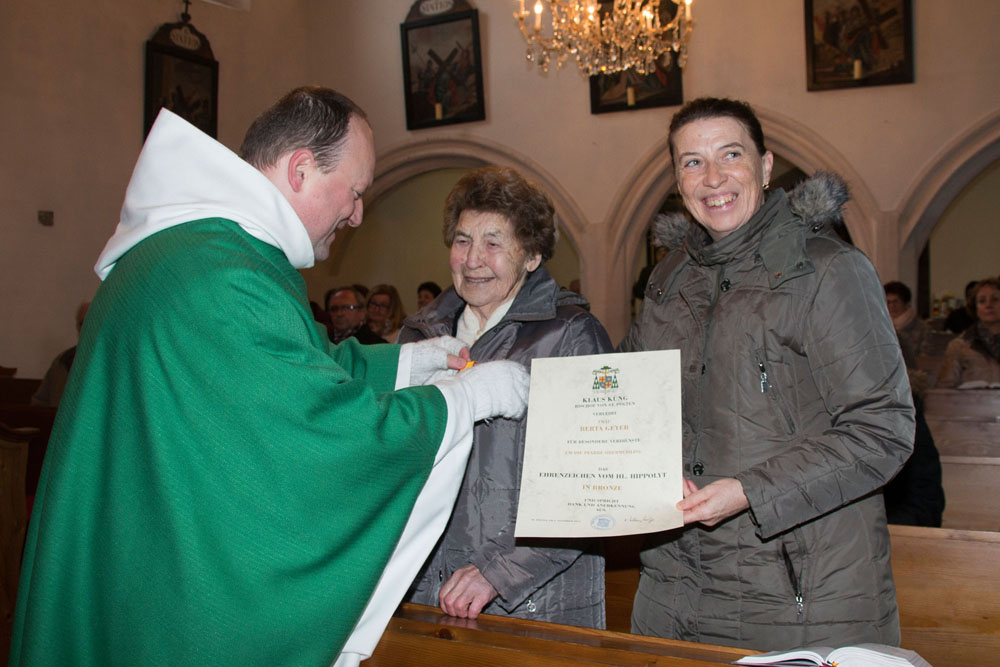 Verleihung d. Ehrenzeichen v. Hl. Hippolyt in Bronze an Frau Berta Geyer am 12. Februar